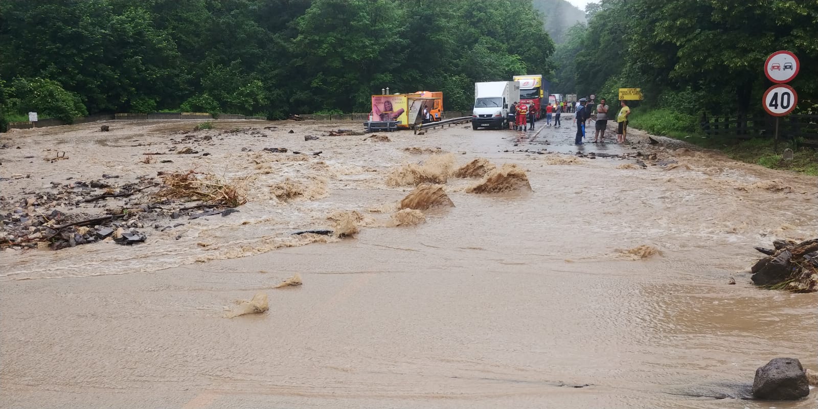 Foto şi VIDEO. Potop în zona Rupea. Două persoane au rămas izolate de ape, iar DN 13 este blocat de copaci