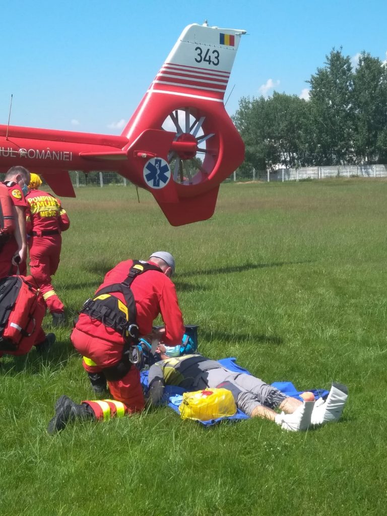 Foto şi Video. Turist accidentat în Munţii Făgăraşului după ce s-a întâlnit cu un urs. Bărbatul a fost preluat de un elicopter SMURD