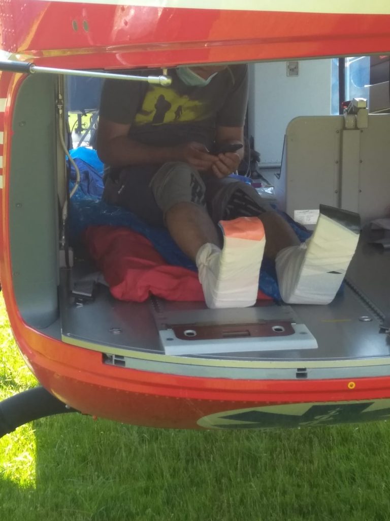 Un bărbat de 41 de ani din Cluj era împreună cu prietena sa în Munţii Făgăraşului cu intenţia de a face creasta dumnică, 28 iunie. În timp ce se afla pe traseul dintre Turnuri şi Podragu, cei doi s-au întâlnit cu un urs. De frică s-au retras de pe potecă din calea ursului, dar animalul i-a urmărit.  Cu puţin noroc, turiştii au intrat  în pădure, timp în care ursul a plecat în altă direcţie.  Din cauza terenului accidentat bărbatul a căzut şi şi-a luxat ambele glezne. Prietena lui a sunat la 112 şi a cerut ajutor.  În jurul orei  13.00, un echipaj  SMURD de la Târgu Mureş s-a deplasat  în zonă  cu un elicopter  pentru a prelua victima.  Elicopterul a aterizat  pe stadionul din Victoria, de unde un  grup de salvatori a urcat în masiv pentru a-l salva pe turist.  După preluarea acestuia, elicopterul a aterizat din nou pe stadion  unde i-a fost acordat  primul ajutor. Victima a fost transportată la un spital din Sibiu.
