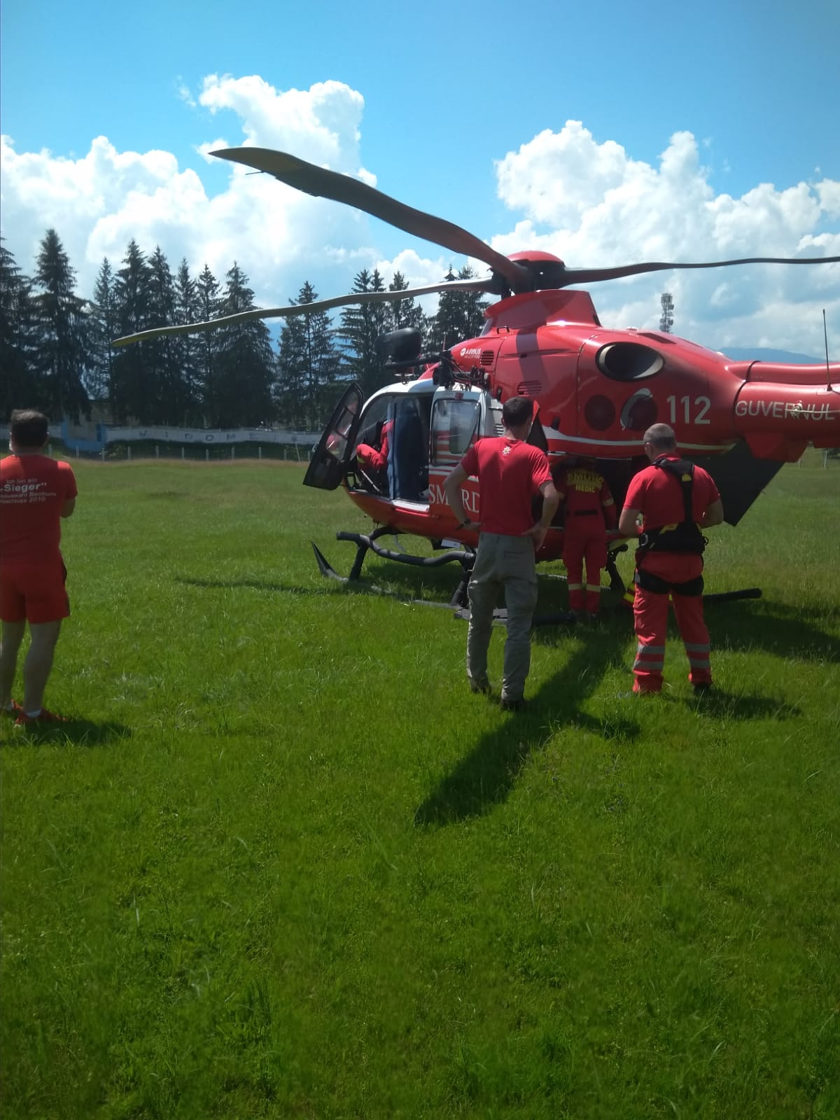 Foto şi Video. Turist accidentat în Munţii Făgăraşului după ce s-a întâlnit cu un urs. Bărbatul a fost preluat de un elicopter SMURD