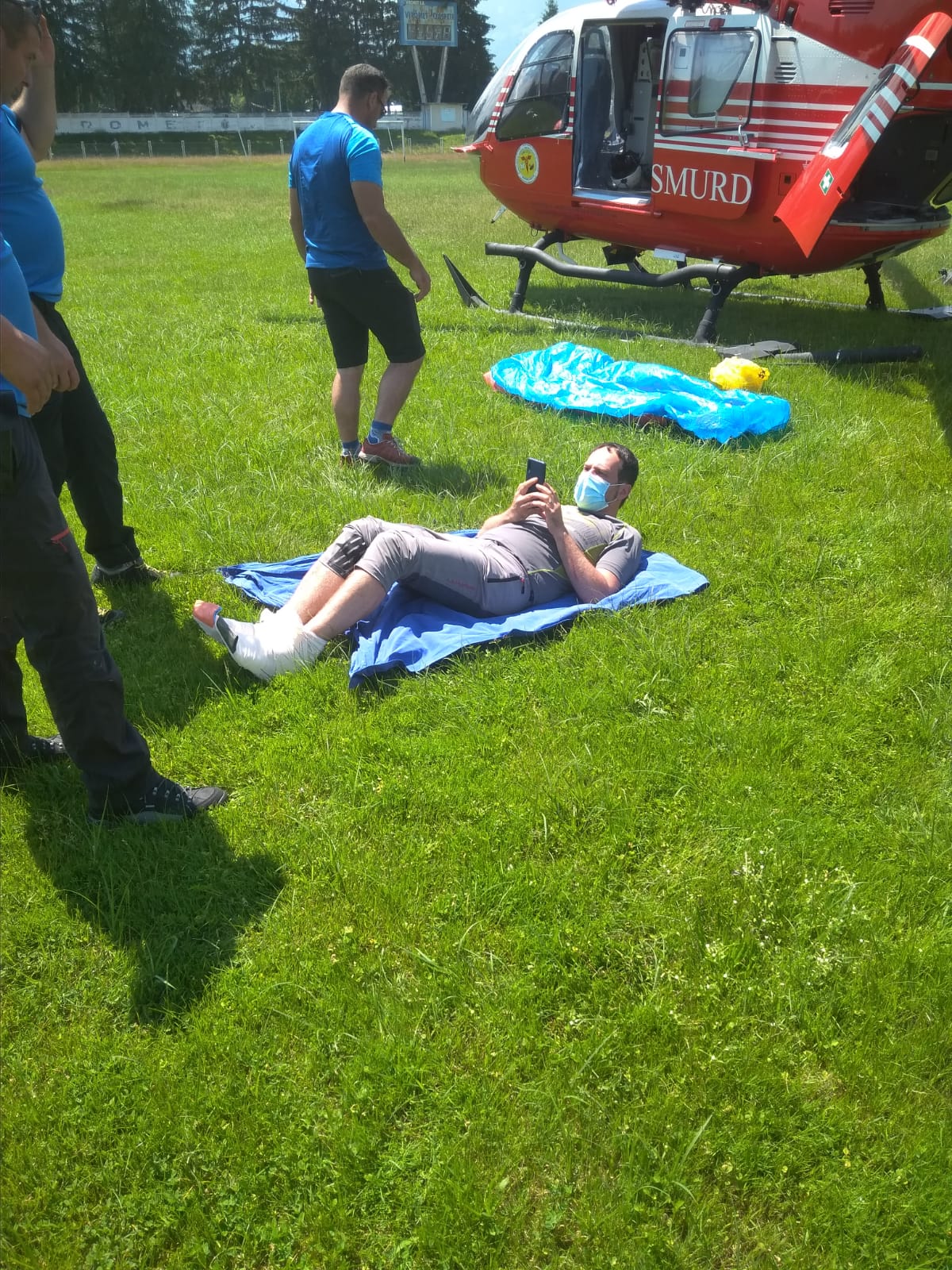 Un bărbat de 41 de ani din Cluj era împreună cu prietena sa în Munţii Făgăraşului cu intenţia de a face creasta dumnică, 28 iunie. În timp ce se afla pe traseul dintre Turnuri şi Podragu, cei doi s-au întâlnit cu un urs. De frică s-au retras de pe potecă din calea ursului, dar animalul i-a urmărit.  Cu puţin noroc, turiştii au intrat  în pădure, timp în care ursul a plecat în altă direcţie.  Din cauza terenului accidentat bărbatul a căzut şi şi-a luxat ambele glezne. Prietena lui a sunat la 112 şi a cerut ajutor.  În jurul orei  13.00, un echipaj  SMURD de la Târgu Mureş s-a deplasat  în zonă  cu un elicopter  pentru a prelua victima.  Elicopterul a aterizat  pe stadionul din Victoria, de unde un  grup de salvatori a urcat în masiv pentru a-l salva pe turist.  După preluarea acestuia, elicopterul a aterizat din nou pe stadion  unde i-a fost acordat  primul ajutor. Victima a fost transportată la un spital din Sibiu.
