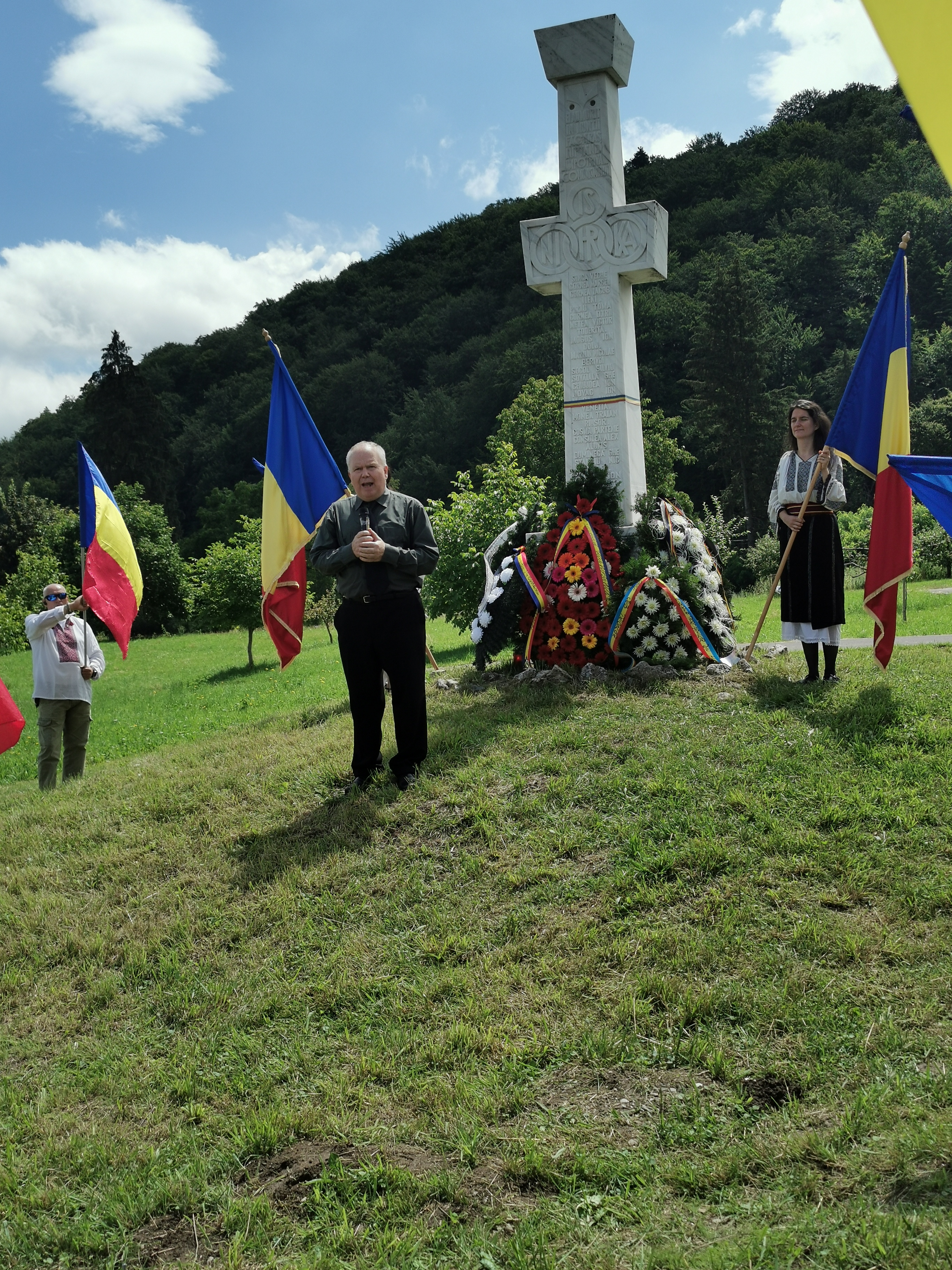 ,,Membrii familiilor ajutaţi de supravieţuitori au ridicat această Cruce pentru a ne aduce aminte de jertfa şi de suferinţele acestor luptători pentru neamul românesc. Când treceau pe cărările munţilor s-au jurat  ca aceia care vor supravieţui să adune oasele celor morţi într-un singur loc, care să fie loc de pomenire. Nu şi-au imaginat că acel groaznic regim  nu va permite nici astăzi ca osemintele celor răpuşi în luptă  să poată fi găsite, identificate şi aduse în mormânt creştinesc. Dar crucea s-a edificat şi de 25 de ani, aici, se adună  familiile luptătorilor din Ţara Făgăraşului, cei care cred în lupta acestor viteji eroi, cei care au conştiinţa acestei jertfe  pentru a se închina  în faţa acestui monument.   Dumnezeu a ajutat ca unul dintre ei să supravieţuiască ca să scrie despre lupta lor  şi să ridice acest monument. Este Ion Gavrilă Ogoranu care a ţinut ca acest eveniment să se organizeze în fiecare an” a spus Coriolan Baciu, preşedintele Fundaţiei Ion Gavrilă Ogoranu.