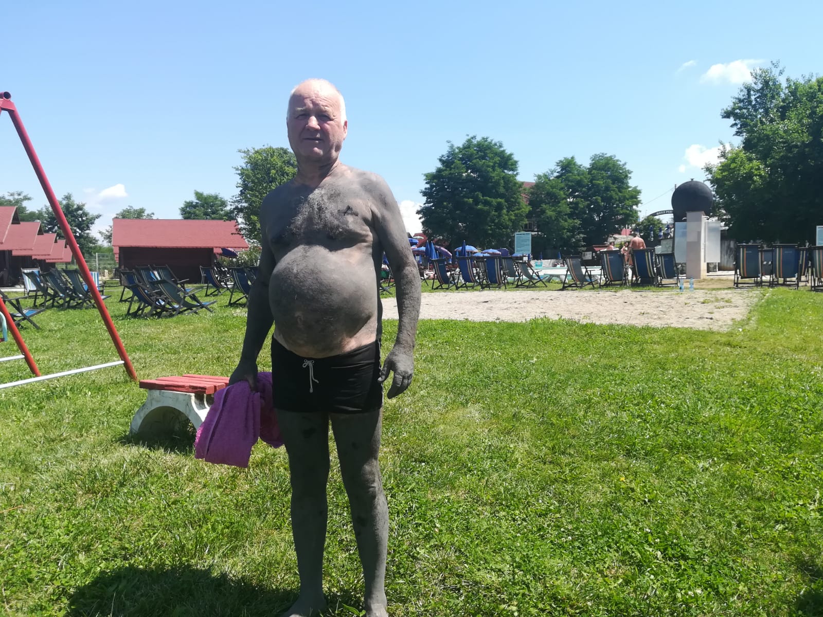 ,,Sunt din Zărneşti şi vin la Băile Perşani periodic. În această vară din cauza ploilor am venit  doar de trei ori. O dată cu vârsta au început şi durerile reumatice şi trebuie să mă tratez. Sănătatea este cea mai importantă. Înainte de a pune nămolul pe corp trebuie să stai la soare cel puţin 30 de minute, apoi te ungi cu nămol pe tot corpul şi stai cel puţin 45 de minute până când acesta se usucă, iar pielea începe să se strângă. Nămolul de la Perşani are calităţi bune pentru că efectele se simt imediat. În urmă cu câţiva ani pensionarii beneficiau de o reducere la biletul de intrare în ştrand, însă acum nu mai există reducerea respectivă. Taxa de intrare este de 20 de lei, nu este o sumă mare, dar o reducere era bună. În anii trecuţi, mergeam la Techirghiol şi la Eforie Nord, însă acum cu pandemia stăm în jurul casei. De obicei vin în cursul săptămânii ca să evit  aglomeraţia şi  stau liniştit fără să fiu deranjat.  Pentru că în această perioadă de pandemie nu se mai fac împachetări cu nămol şi băi galvanice în multe staţiuni, am preferat să vin la Perşani unde efectele nămolului dau randament, iar durerile de picioare cedează’’ a spus Andrei Ştefan de 68 de ani din Zărneşti