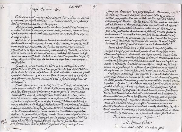 În arhiva lui Virgil Mateiaş există o scrisoare  redactată la maşina de scris şi purtând o data de 17.06.1992.   Acum să vă dau vestea cea bună: fraţii voştri Liţă şi Luca s-au întâlnit şi s-au îmbrăţişat, gândindu-se la voi. Spuneţi asta şi vărului Chiril. (mesajul însemna înţelegerea care a avut loc între Sima şi Mateiaş, cerându-se transmiterea şi către Chirilă Ciuntu). În urma investirii ca şef al Grupului de Comandă interior, Nistor Chioreanu avea să transmită, printr-o circular din toamna lui 1992, tuturor legionarilor din România, hotărârea reînscrierii Partidului “Totul pentru Ţară” şi solicitarea participării tuturor cu semnături pentru îndeplinirea formalităţilor legale în acest sens. Prin acest partid, membrii grupului de comandă considerau că vor înscrie activitatea lor în paradigma pluripartită, a noilor realităţi româneşti, punându-se în acord cu regulile democratice şi constituţionale. Din nefericire, după moartea lui Horia Sima, principiile stabilite de acesta pentru realizarea unităţii din ţară au fost încălcate de unii reprezentanţi ai grupării din jurul lui Mircea Nicolau.  În realizarea acestui studiu s-au utilizat  explicaţii orale acordate de Virgil Mateiaş, Neculae Purcărea, Romeo Puşcaşu, Teofil Mija, Maria Brahonschi, dr. Ion Grecu, Ioan Halmaghi.