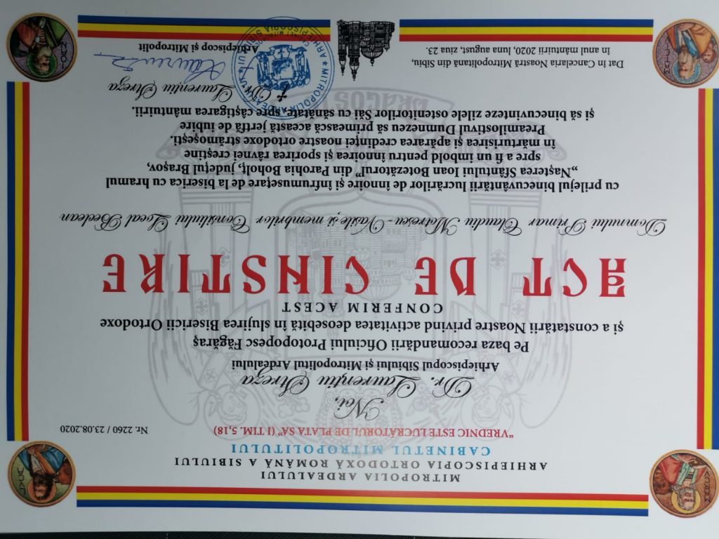 Şi implicarea lui Adrian Veştea, preşedintele CJ Braşov, în investiţiile de la bisericile din comuna Beclean, a fost menţionată într-un Act de Cinstire al Mitropolitului Laurenţiu.