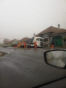 Un accident rutier s-a petrecut pe DN1, la Sâmbăta de Jos, marţi, 29 septembrie a.c. Un autotren încărcat cu butelii, care se deplasa dinspre Sibiu spre Braşov, a trecut peste separatoarele de sens din mijlocul şoselei, moment în care a fost proiectat într-o casă de pe partea opusă a sensului de mers. La faţa locului au ajuns pompierii. Circulaţia este oprită.