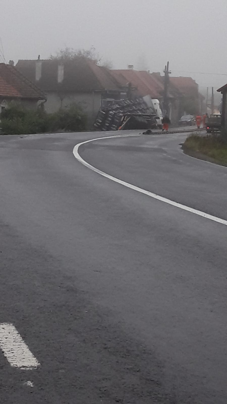 Un accident rutier s-a petrecut pe DN1, la Sâmbăta de Jos, marţi, 29 septembrie a.c. Un autotren încărcat cu butelii, care se deplasa dinspre Sibiu spre Braşov, a trecut peste separatoarele de sens din mijlocul şoselei, moment în care a fost proiectat într-o casă de pe partea opusă a sensului de mers. La faţa locului au ajuns pompierii. Circulaţia este oprită.
