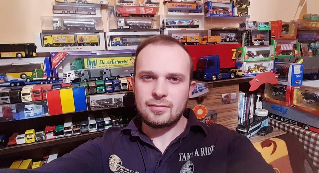 ,,De mic copil admiram camioanele pe stradă, mergeam în parcări le pozam şi uneori le desenam. Din liceu am început să colecţionez maşini în miniatură. Îmi amintesc că primul meu camion din colecţie l-am primit de la Metro, într- o pungă cu cereale. Era o machetă cu camion marca Man. În copilărie toate maşinuţele le dezmembram, dar de multe ori le stricam. Nu aveam grijă de jucării şi nu le păstram. Acum am reuşit să am un parc auto de maşini în miniatură. O parte din ele sunt frumos aranjate pe rafturi în bibliotecă, iar altele le ţin depozitate în cutii pentru că nu am loc suficient să le expun. În timpul liber stau şi le admir, le şterg de praf sau asamblez alte maşini noi. Părinţii mi-au spus că am reuşit să transform camera mea într-un depozit de maşinuţe şi ar fi cazul să mă opresc. Dar eu nu mă pot abţine. Uneori am făcut sacrificii să-mi achiziţionez cât mai multe maşini în miniatură. Cea mai scumpă maşină din colecţie valorează aproape 100 de euro şi este vorba despre un camion cu multe roţi pentru transport gabarit depăşit” a spus Florin Valer Ogreanu care preferă din colecţia lui camioanele de tip Scania şi Daf.