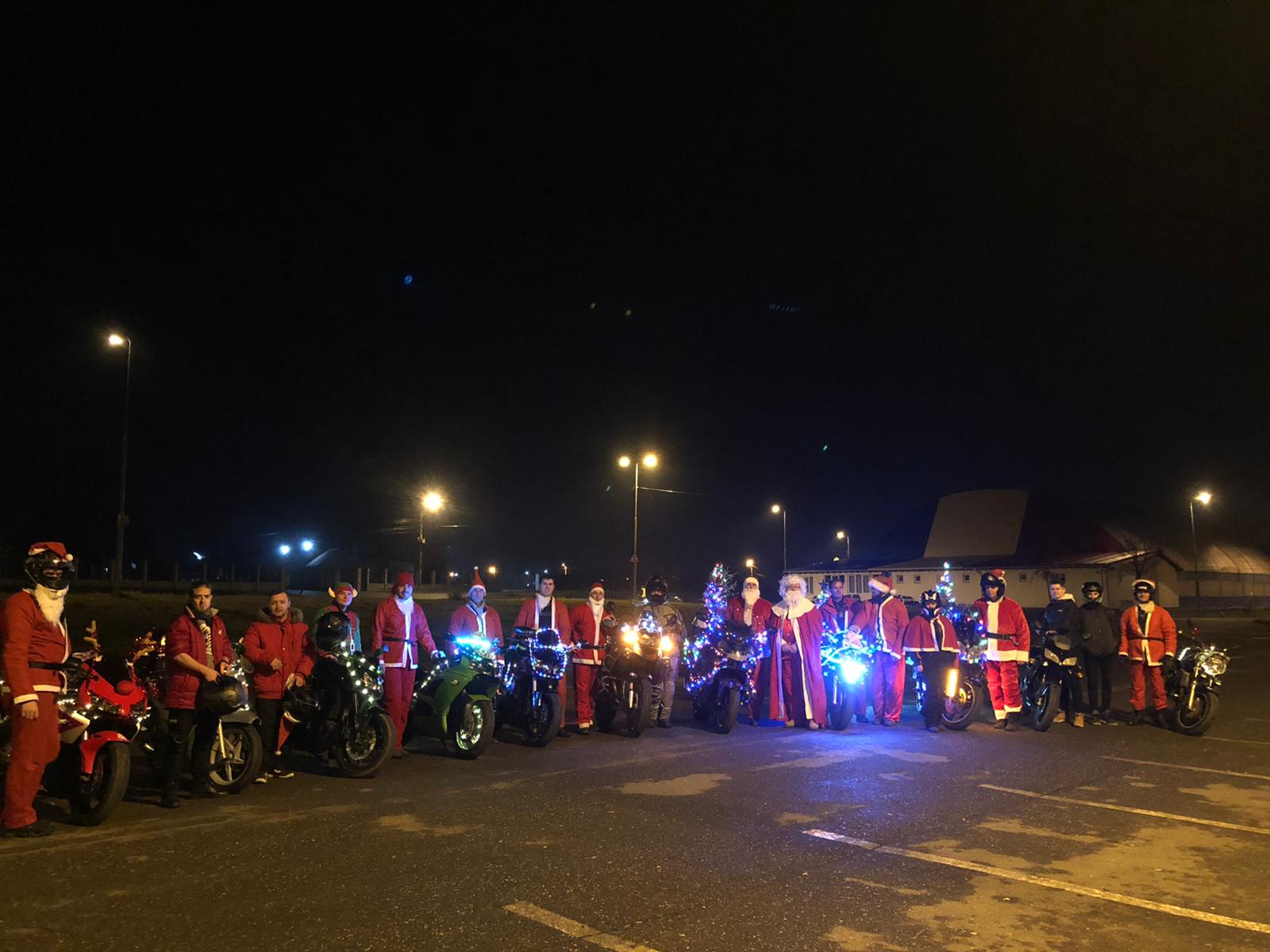- ,,Am fost vreo 22 de motociclişti, care am pornit în coloană câte doi pentru a nu perturba traficul pe bulevard. Am avut 4 moşi care aveau pachetele cu daruri pe platforma unei maşini. În acest an am avut 400 de pachete pe care le-am distribut celor care ne-au ieşit în drum, pe trotuar. Anul trecut am împărţit 800 de pachete” a mai spus Sergiu Gojnete.