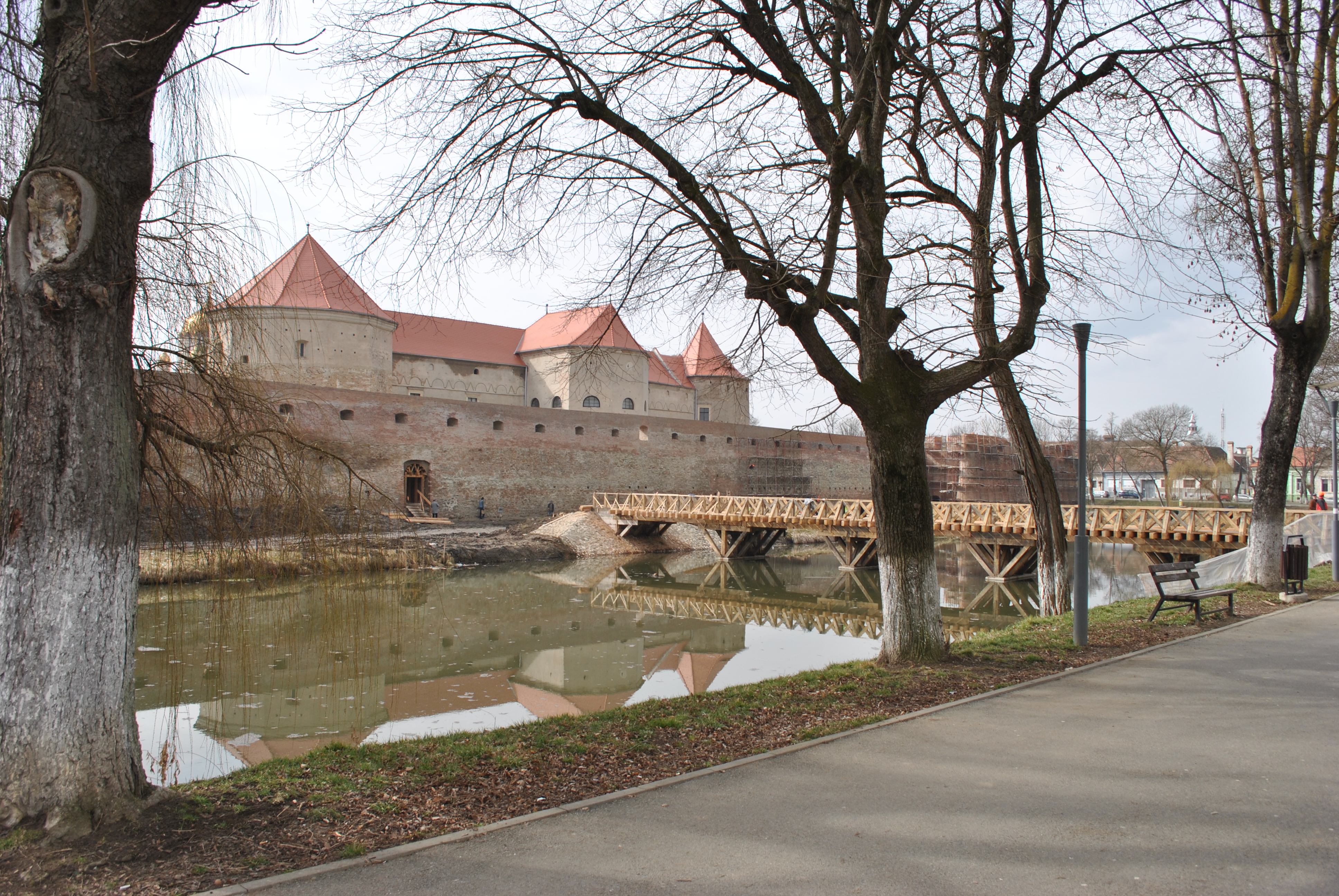 Una dintre cele mai spectaculoase  părţi din proiect este podul de pe latura de nord a cetăţii, care este destinat  pietonilor. Podul va avea  o lungime de 44 de metri şi o lăţime  de 3,8 metri şi va asigura trecerea peste lac.  ,,Pentru construirea podului de pe latura nordică s-a folosit structură pe piloni forjaţi verticali la 10 metri adâncime de la luciul apei. Apoi s-a pus grinda de coronament şi s-a trecut la structura de  lemn de stejar. Până pe data de 15 aprilie a.c.,  podul de pe latura nordică va fi finalizat’’ a mai spus inginerul Vasile Culea. Un alt pod se va construi   pe latura de est pe unde se intră acum în cetate. Acest pod va avea o parte care se rabatează, adică se ridică numai un segment şi se va vedea luciul apei. Acest pod va fi atât pietonal, dar şi pentru maşini.