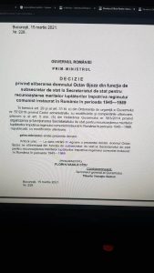 Fundația Ion Gavrilă Ogoranu, înființată de luptători în Rezistența anticomunistă și urmași ai acestora, a luat cunoștință cu stupefacție de decizia premierului liberal Florin Câțu de a-l destitui pe domnul Octav Bjoza din funcția de subsecretar de stat la Secretariatul de stat pentru recunoașterea meritelor luptătorilor împotriva regimului comunist instaurat în România în perioada 1945-1989. Suntem încredințați că întreaga lume românească trăiește în aceste momente aceleași sentimente de indignare și frustrare în fața acestei samavolnicii de care nu a fost capabilă nici o altă guvernare anterioară. Fărădelegea este cu atât mai mare cu cât România este o țară în care represiunea comunistă a fost una dintre cele mai dure, afectând sute de mii de persoane, iar consecințele ei au fost resimțite de milioane de oameni, membrii familiilor victimelor acestei represiuni. În condițiile în care România se află pe ultimul loc în ceea ce privește reparațiile morale acordate acestor victime și urmașilor lor, iar participanții direcți la lupta de rezistență aproape că au dispărut din punct de vedere biologic, prezența domnului Octav Bjoza în Guvernul României constituia nu doar o necesitate de reprezentare a unui grup social, ci mai ales un reper moral. Nu greșim dacă spunem că, printre figurile șterse ale atâtor guvernări caracterizate prin corupție și incompetență, Octav Bjoza a reprezentat singura figură emblematică și purtătoare de substanță morală. Considerăm util să reamintim că înființarea unui post de secretar de stat destinat problemelor celor care au luptat împotriva comunismului a constituit un deziderat permanent al foștilor deținuți politici după 1990, pentru care au militat activ oameni ca Ion Gavrilă Ogoranu, Constantin Iulian, Gheorghe Jijie, Constantin Ticu Dumitrescu și alții. Ignorat de toate guvernele de stânga sau de dreapta, acest deziderat a fost pentru prima dată împlinit în 2014, ca urmare a lobby-ului făcut de fostul președinte al României, dl Emil Constantinescu, astfel apărând postul de subsecretar de stat ocupat de domnul Octav Bjoza în toate guvernele de atunci și până acum. A devenit o cutumă aceea ca titularul pentru acest post să fie desemnat de Asociația Foștilor Deținuți Politici din România (AFDPR), așa cum postul de secretar de stat era ocupat de reprezentantul revoluționarilor. A fost pentru prima dată când luptătorii anticomuniști și urmașii lor au fost reprezentați în Guvernul României, așa cum era firesc, iar funcția exercitată de dl Octav Bjoza a fost una nu politică, ci în primul rând de reprezentare morală. În toți acești șapte ani de activitate în cadrul secretariatului de stat, președintele AFDPR a reprezentat cu demnitate și profesionalism, în țară și în străinătate, pe luptătorii anticomuniști și urmașii acestora. Au fost ani dedicați integral luptei pentru perpetuarea Memoriei Rezistenței, terfelite de urmașii celor care au instaurat comunismul, și drepturilor camarazilor săi de luptă și copiilor acestora, până astăzi nedreptățiți de copiii celor veniți pe tancurile sovietice. Au fost ani în care Octav Bjoza nu a precupețit nici timp, nici sănătate, dormind câteva ore pe noapte și fiind permanent pe drumuri, între Secretariatul de stat și AFDPR, între diferite locuri din țară unde susținea conferințe, participa la săpăturile de căutare a osemintelor celor exterminați de comuniști sau susținea demersurile celor pe care îi reprezenta. Se pare că integritatea domnului Bjoza, care niciodată nu a tăcut în fața nedreptăților și a criticat de fiecare dată inclusiv măsurile incorecte ale guvernelor din care făcea parte, nu a plăcut niciodată. Dar nimeni până la acest guvern nu a îndrăznit să se atingă de reprezentantul foștilor deținuți politici din executivul României. Este limpede că avem de-a face cu o decizie de ordin represiv, o sancțiune pentru modul în care domnul Octav Bjoza a ridicat glasul împotriva măsurilor de discriminare pe criterii politice a memoriei luptătorilor anticomuniști și drepturilor copiilor acestora, împotriva confiscării IICCMER, epurării istoricilor de prestigiu ai acestuia și deturnării sale de la rostul inițial: investigarea onestă a crimelor comunismului. Dar și criticării modului impertinent în care anumiți deputați înțeleg să perpetueze către noile generații măsurile persecutorii adoptate împotriva luptătorilor în Rezistență. Nu știm dacă guvernul PNL-USR-PLUS realizează că prin decizia de ieri, de destituire a domnului Octav Bjoza din funcția de subsecretar de stat, comite nu doar un uriaș abuz moral, ci aduce o gravă ofensă comunității foștilor deținuți politici, a luptătorilor anticomuniști și urmașilor acestora. O măsură de natură a redeschide în societatea românească răni care ar fi trebuit vindecate printr-un proces de reconciliere națională. Ceea ce știm cu certitudine este faptul că ne vedem, din nou, aruncați din raportul de drept, de reprezentare în cadrul instituțiilor statului român, într-o poziție care ne amintește tot mai mult de aceea în care au fost ținuți zeci de ani părinții și bunicii noștri. (Fundația Ion Gavrilă Ogoranu, Președinte: Coriolan Grigore Baciu, Secretar: Florin Dobrescu)