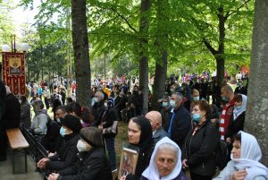 În Vinerea din Săptămâna Luminată, 7 mai 2021,  parcă toate drumurile duceau spre Mănăstirea Brâncoveanu de la Sâmbăta de Sus unde se prăznuia hramul  ,,Izvorul Tămăduirii”. Aglomeraţie mare încă de la intrarea în complexul turistic, iar echipaje de poliţişti şi jandarmi încercau să menţină ordinea şi distanţarea între oameni. După un an în care enoriaşii n-au putut participa la această sărbătoare, acum s-au adunat la mănăstire sute de persoane.  În jurul altarului din pădure, lume multă, iar   liniştea pădurii era întreruptă de troparul Învierii. Prin  staţiile montate la altar, liturghia răzbătea peste culmile munţilor.  Un loc mai minunat precum acesta n-am mai găsit, spuneau unii credincioşi veniţi de departe pentru acest praznic.