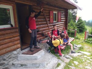 • ,,Sâmbătă, 10 iulie a.c., în jurul orei 8.00, am plecat din curtea instituţiei cu două autoturisme   până la baza masivului, apoi am urcat pe jos până  la Baza Salvamont  unde am fost cazaţi. În perioada 10 – 11 iulie a.c., copiii au participat la cursuri de prim ajutor şi cursuri de căţărare. Salvamontiştii le-au explicat elevilor cum se monitorizează victima unui accident montan. Au învăţat cum să imobilizeze corect o persoană accidentată, cum se pune un guler cervical sau cum se procedează în cazul unei  fracturi.  Foarte încântaţi au fost şi de lecţiile de căţărare. Elevii au avut parte  şi de o drumeţie pe Valea Sâmbetei, unde au putut admira bujorii de munte şi au vizitat stâna de pe Valea Sâmbetei.  În ultimii doi ani nu am organizat acţiuni din cauza pandemiei, iar copiii abia au aşteptat acest moment. Colaborarea cu salvatorii montani va continua şi în perioada septembrie – octombrie a.c., când vom  organiza o altă acţiune comună’’ a spus Dorina Pol, directorul de la Clubul Copiilor Victoria. Împreună cu salvamontiştii elevii au nivelat pârtia de schi de pe Valea Sâmbetei.