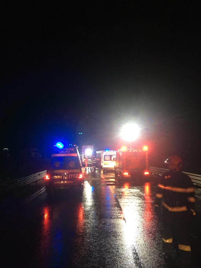 - ,,Din primele informaţii primite se pare că în urma accidentului au rezultat două victime, una dintre ele fiind încarcerată şi inconştientă. S-a intervenit pentru descarcerarea victimei inconştiente, iar în momentul de faţă i se aplică manevre de resuscitare de către personalul medical. A doua victima este conştientă şi i se acordă asistenţă medicală la faţa locului” transmite ISU Braşov.