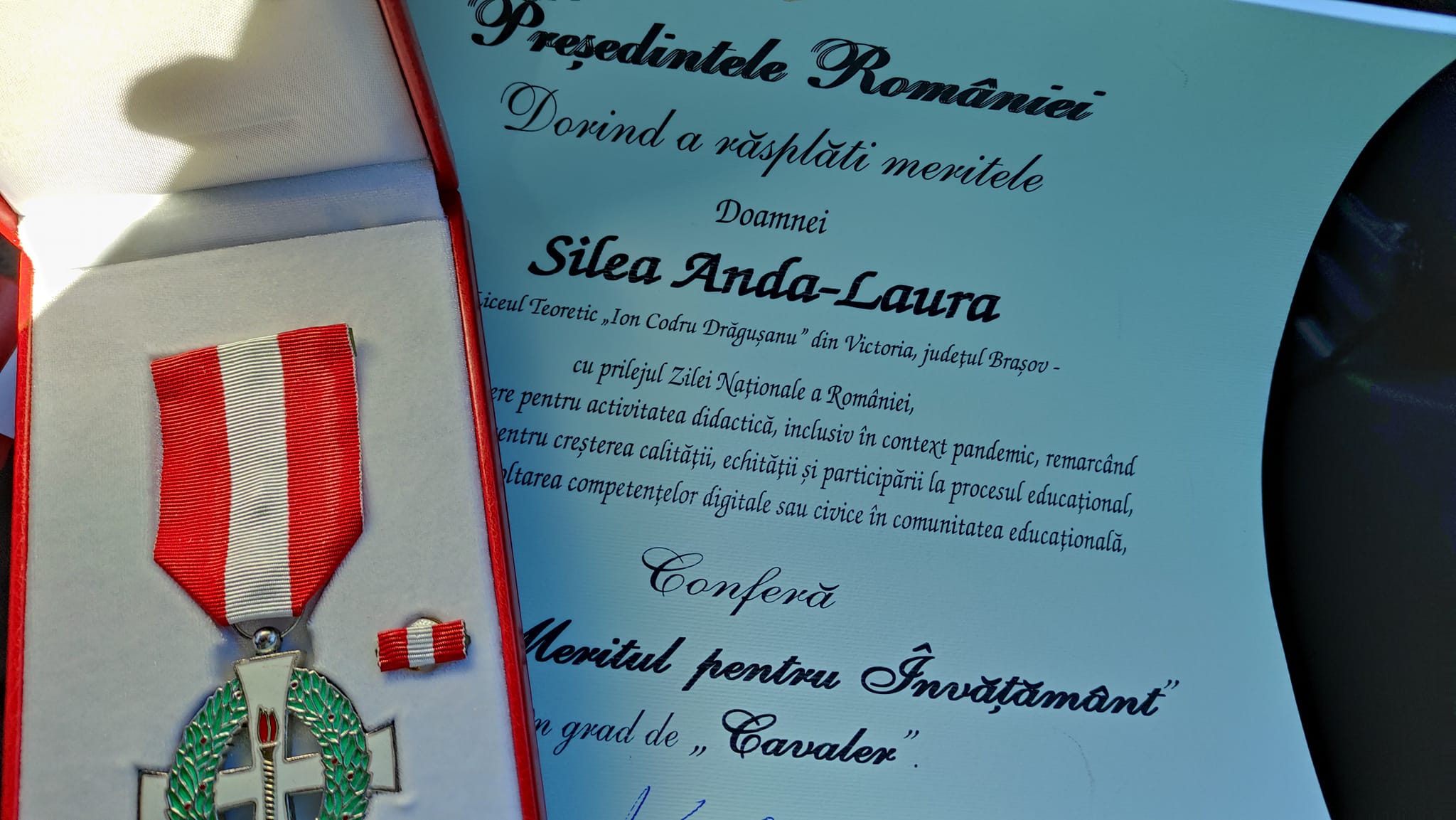 Profesoara Silea Anda-Laura, director la  Liceul Teoretic „Ion Codru Drăgușanu” din Victoria a fost decorată de Preşedintele Klaus Iohannis  cu ocazia Zilei Naţionale cu distincţia ,,Meritul pentru Învăţământ în grad de cavaler”. Din judeţul Braşov au mai fost decoraţi alţi patru  profesori din Braşov, Săcele şi Ormeniş.