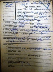 - Mandat de arestare nr. 14 din 1953 pentru favorizarea infractorului (art. 284-209 CP), depus la penitenciar la 31 martie 1953. La 24 mai 1953 ajunge la Jilava, iar la 30 mai este transferat la Capu Midia.