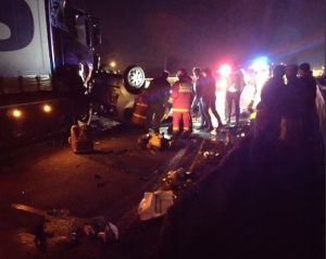 Un accident rutier grav s-a petrecut în această seară pe DN1, la ieșirea din Voila spre Sâmbăta de Jos, în zona podului. Un autoturism și un TIR au intrat frontal în coliziune, iar din impact, autoturismul ajungând cu roțile în sus pe carosabil.  Traficul este blocat pe ambele sensuri de mers. Martorii spun că sunt victime încarcerate. La fața locului au ajuns mai multe echipaje SMURD și SAJ, dar și polițiștii. Un bărbat a pierdut controlul direcției, a intrat  în parapet de unde a fost aruncat în fața TIR-ului. Victima era conștientă și a fost transportată la spital.