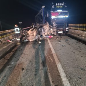 Foto. Accident rutier grav pe DN1, la Voila. Un TIR și un autoturism au intrat frontal în coliziune