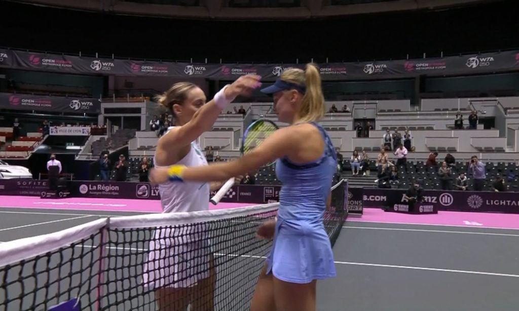 Dayana Yastremska (21 de ani, locul 128 WTA) s-a calificat dramatic în optimile turneului de la Lyon, după ce a eliminat-o pe Ana Bogdan (29 de ani, locul 79 WTA), scor 3-6, 7-6(7), 7-6(7).