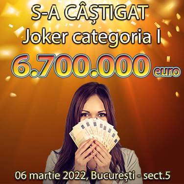 ”La tragerea principală Joker din 6 martie 2022 s-a câştigat cel mai mare premiu din istoria acestui joc, în valoare de 33.201.347,96 lei (peste 6,70 milioane de euro). Biletul norocos a fost jucat la agenţia 75-010 din sectorul 5, Bucureşti şi a fost completat cu două variante simple la Joker şi o variantă la Noroc Plus, preţul acestuia fiind de 18,50 lei”, anunţă compania Loteria Română.