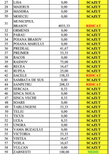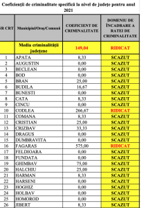 •   Rata de criminalitate zero: Beclean, Buneşti, Cincu, Drãguş, Pãrãu, , Hoghiz, Lisa, Mândra, Sâmbãta de Sus, Șinca Nouã, Șoarş, Ticuş, Ungra