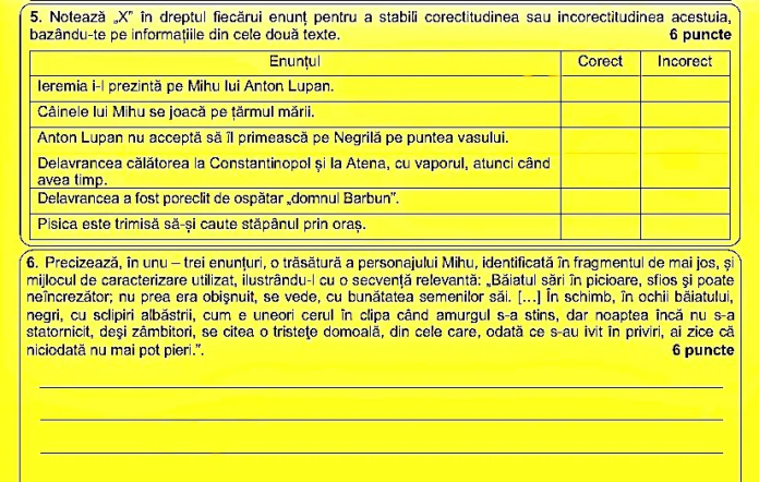 Absolvenții de clasa a VIII-a care au susținut azi proba scrisă la Evaluarea Națională 2022 au primit varianta 4 a subiectelor făcute pentru acest examen de către Centrul Național de Politici și Evaluare în Educație, instituție din subordinea Ministerului Educației. Potrivit subiectelor primite de elevi, textele suport, la prima vedere, au fost din „Toate pânzele sus”, de Radu Tudoran și „Frânturi din viața lui Delavrancea”, de Cella Delavrancea. Pe baza acestora au fost câte 9 itemi (cerințe) la primul text și 8 pentru al doilea.