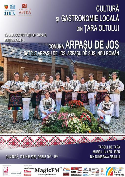 Satele Arpașu de Jos, Arpașu de Sus, Nou Român din comuna Arpaș vor organiza duminică, 19 iunie 2022, între orele 10-16, ,,Târgul comunităților rurale, ediția a XXVII-a, Țara Oltului“, la Muzeul Astra din Sibiu. Este Târgul de țară într-un muzeu în aer liber, așa cum spune primarul comunei Arpaș, Constantin Văcariu. Evenimentul va avea un program complex cu spectacol de muzică și dansuri populare susținut de membrii Ansamblului Comorile Arpașului, ateliere meșteșugărești, ateliere gastronomice și un târg cu produse tradiționale pregătite în Țara Oltului. Se vor întrece în aceste ateliere reprezentanții comunității din satele: Arpașu de Jos, Arpașu de Sus și Nou Român.