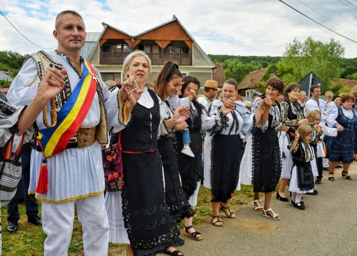 Foto. Ziua portului popular, la Calbor. ,,Armindenii și bortele fetelor, un obicei unic al satului“ explică primarul Claudiu Motrescu