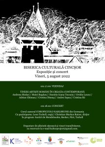 Concertul va fi precedat, de la orele 17.00, de vernisajul expoziției câștigătorilor concursului „Tineri artiști români în creația contemporană 2021”, inițiat anul trecut de Fundația Culturală Intact din Cluj și destinat descoperirii și promovării tinerilor artiști și a noilor tendințe în arta contemporană românească. Expoziția este formată din lucrările celor opt artiști selectați în urma jurizării – Andreea Medar, Matei Bogdan, Daniela-Ioana Tocoaie, Ovidiu Leuce, Adrian Ghiman, Cristina Dimuș, Andrei Ispas și Cristina Ré. Exponatele au mai fost prezentate la Cluj în noiembrie 2021, iar acum este itinerată la Cincșor. În plus, câștigătorii premiilor I-III vor beneficia de trei reședinte creative la Cincșor pe parcursul anului 2022. Concursul a fost organizat de Fundația Culturală Intact în parteneriat cu Primăria Cluj-Napoca, Banca Transilvania și ,,Cincșor. Transilvania. Case de Oaspeți“. Expoziția rămâne deschisă la biserica fortificată până la finalul lunii august, când Cincșorul va fi gazda unei noi ediții a Reședinței Internaționale de Artă Vizuală (26 august – 6 septembrie 2022), a cărei expoziție va fi inaugurată sâmbătă, 3 septembrie. După concert, publicul este invitat la o degustare de plăcintă săsească și vinuri transilvănene, cu programare în prealabil la kulturproject@gmail.com. Intrarea este liberă. Donațiile în beneficiul bisericii fortificate Cincșor sunt încurajate, fondurile obținute din donații sunt folosite pentru întreținerea și restaurarea monumentului.