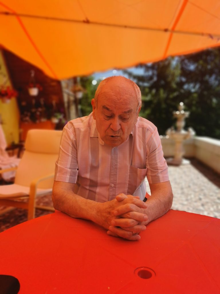 Ing. C.D.: Am ajuns la Feldioara printr-un ghinion. Am avut un băiat care s-a înecat la ştrand în 1993, era student şi avea 20 de ani. Fusesem într-un concediu cu băiatul şi soţia, la Vidra. Căutam un loc de casă. Am găsit la Colun, la Glâmboaca, voiam pe malul drept al Oltului. Am ajuns la Feldioara. Aci pe deal era izlaz comunal. Eram cu băiatul care se uita la munte şi voia să urce pe creastă. Zicea, tot am să ajung pe muntele acesta, dar la 2 zile a murit. Am rămas legat de acest loc în amintirea băiatului. Antrepriza care efectua lucrările în zonă, trebuia să demoleze barăcile, peste 1000 de bucăţi. Au fost vândute barăcile din lemn, pe bucăţi, la salariaţi în primul rând, dar s-au păstrat vreo 200 de barăci pentru fostii şantierişti, moldoveni care au devenit ardeleni. Am cumpărat şi eu materiale din acele barăci şi mi-am construit această casă. Am făcut o casă fără pereţi şi am economisit foarte mult, cam 1800 de dolari m-a costat casa. Într-o lună am terminat casa. Vin aici din aprilie până în octombrie.