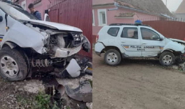 A deschis frumos poarta instituției, s-a urcat în mașină Poliției Locale, a pornit-o și a plecat la distracție. Din păcate pentru el, mașină Poliției Locale din Apața nu a vrut să asculte de comenzile lui și astfel s-a tamponat la coltul străzii Gării. Rezultatul: dauna totală a autoturismului, bun de fier vechi.”, transmite pe Facebook observatorul Apaţa.
