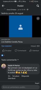Postarea a fost vizibilă pe contul fb al Primăriei Părău, Sedinte Consiliu local Parau, dar ulterior a fost ștearsă. Văzând postarea l-am întrebat pe primarul Ovidiu Ovesea cât de reale ar fi astfel de amenințări?