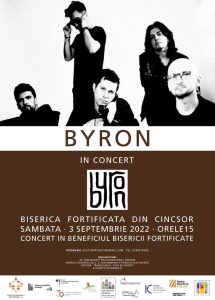 - ora 15:00: Concert Byron, la biserica fortificată din Cincșor. Tarif: 50 lei/ persoană. Rezervări la kulturproject@gmail.com, tel. 0744.373.090. Concert în beneficiul bisericii fortificate, toate fondurile obținute sunt folosite pentru restaurarea și întreținerea monumentului.