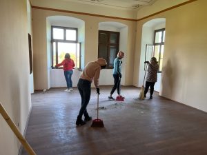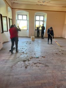 - ,,Au participat la această acțiune a comunei 25 de persoane, săteni, angajați ai primăriei și elevi de la școala din sat. Am avut 4 trimmere, mături, topoare, unelte pentru a face curățenie în interior și în curte. Sălile din castel au fost măturate, îndepărtate gunoaiele, au fost curățate scările, intrarea în edificiu. Era înconjurat de bălării, nici nu aveai cum să intri. S-a lucrat de la ora 9.00 la 13.00 și n-am terminat de îndepărtat toate bălăriile. Vom mai organiza o acțiune similară cu angajații din primărie în zilele următoare. Vrem să dăm o nouă strălucire acestui monument istoric foarte important pentru comunitatea noastră“ a spus Nicolae Morariu, primarul comunei Sâmbăta de Sus.
