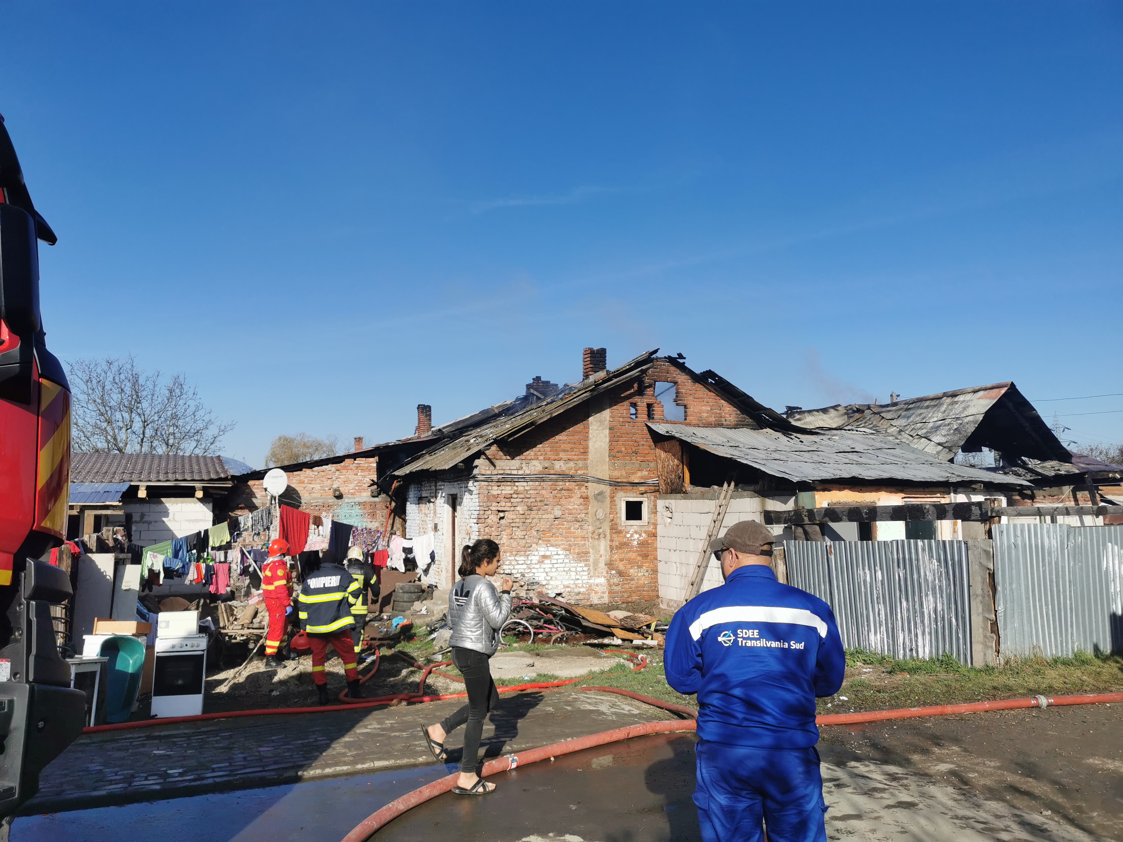 Foto și Video. Încă 4 familii din cartierul Combinat au rămas fără locuințe. Un incendiu a mistuit baraca în care erau chiriași la Primăria Făgăraș.