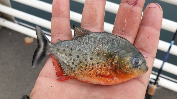 Piranha, specie de pește agresivă, găsită în Crișul Repede. Peștele este originar din America de Sud
