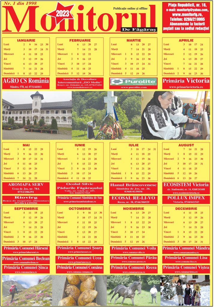 Tradiția Monitorul de Făgăraș merge mai departe! De 25 de ani, Calendarul Monitorul de Făgăraș ajunge în casele cititorilor săi. Calendarul Monitorul de Făgăraș 2023 se distribuie gratuit împreună cu ziarul.