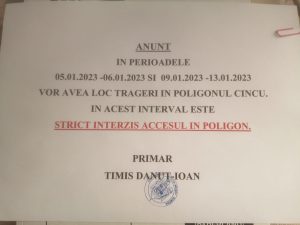 - ,,Perioadele în care au loc trageri în poligon sunt 5-6 ianuarie și 9-13 ianuarie 2023. În aceste perioade este strict interzis accesul“ spune primarul comunei Șoarș, Dănuț Timiș.