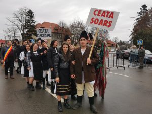 Cetele de feciori din satele făgărășene s-au adunat la Făgăraș, de sărbătoarea Sf. Ion, în cadrul tradiționalului festival anual. Au participat la slujba oficiată la catedrala din centrul municipiului de către protopopul Făgărașului, pr. Iulian Boac, și un sobor de preoți, apoi fiecare ceată de feciori a colindat audiența. A răsunat catedrala de colindele specifice fiecărui sat, așa cum în fiecare casă din Țara Făgărașului s-au auzit colindele care au vestit Nașterea Domnului Iisus. Cetașii, îmbrăcați în frumoasele costume populare tradiționale, au prezentat cu mândrie portul, colindele și jocul popular. Din păcate frumusețea și unicitatea festivalului au fost umbrite de organizarea defectuasă a Municipalității. Prin noroaie și bălți au fost nevoite cetele de feciori, dar și invitații și publicul numeros să străbată un traseu ales la întâmplare. De la catedrală, unde este o zonă neîngrijită, acoperită de noroaie, cetașii au ales un traseu pe care circulația nu era oprită, au ocolit cetatea, unde nu era public, pentru a ajunge pe promenadă, unde erau așteptați de spectatori. Cu greu puteau spectatorii și presa să imortalizeze momente din parada costumelor. Iar la jocul cetașilor înghesuiala a fost și mai mare. Cu greu puteai să obții imagini care să arate frumusețea și strălucirea costumelor și jocul tradițional. Lipsa spațiului n-a permis ca cetașii făgărășeni să-și dea mâna într-o horă comună. Astfel că fiecare și-a ales dansul fiind un amalgam de acorduri muzicale, strigături și joc. Se poate spune că această ediție a fost organizată doar pentru a bifa evenimentul și nu pentru o promovare reală a tradițiilor locului, așa cum ar trebui prezentat un obicei inclus în patrimoniul UNESCO. Organizatorii au părut lipsiți de viziune și chiar de interes în a promova valorile locale și bogăția Țării Făgărașului. S-a demonstrat astăzi că Făgărașul este un oraș turistic local, adică valorile rămân închise în granițele locale. Făcând o comparație cu festivaluri similare din țară, din Bucovina sau Maramureș, Făgărașul se luptă parcă pentru a rămâne la coada oricărui clasament care s-ar întocmi, îngropându-și pe an ce trece patrimoniul cultural, adică ,,averea“ străbunilor. Nu poți să nu te întrebi, așa cum spuneau localnicii prezenți la paradă, centrul vechi ar fi fost cel mai prielnic loc pentru parada și jocul cetașilor. Dar a fost folosit doar pentru a se ajunge la masa oferită de Municipalitate la restaurantul consilierului local unde s-au cheltuit peste 7000 euro (vezi platforma de achiziții publice e-licitati.ro). Cu toate neajunsurile organizatorice, merită felicitați cetașii și fetele pentru păstrarea tradițiilor, dar și primarii din satele făgărășene care susțin și se implică în promovarea valorilor tradiționale. Ce sate au fost reprezentate la festival, vezi galeria foto și video. (Lucia BAKI)