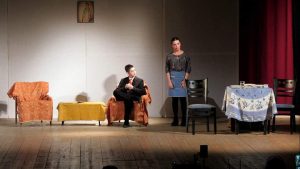 - ,,Este o adaptare după piesa ,,Cerere în căsătorie” a lui A.P. Cehov. Adelina Ifrim a jucat în rolul Nataliei Stepanova, Nicholas Dobrin a jucat în rolul lui Ivan Vasilievici Lomov, un pretendent cam ipohondru, Ioana Frîncu a jucat-o pe Anna Pavlovna, mama Nataliei, iar Cătălina Popa a jucat rolul menajerei. Tinerii actori au transmis publicului prezent în număr mare multă voie bună datorită unei interpretări pline de umor transmisă gradual” a spus Ionuț Sas, coordonatorul trupei Thalia.