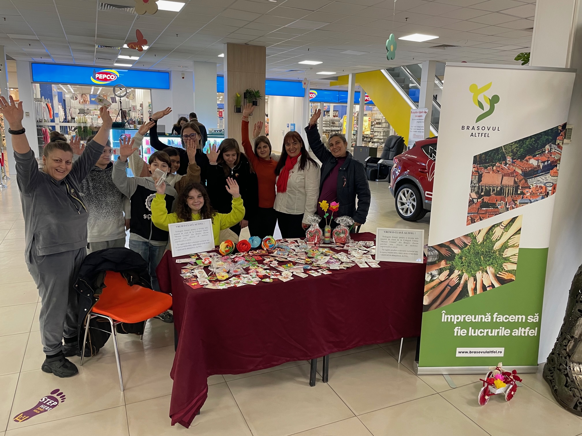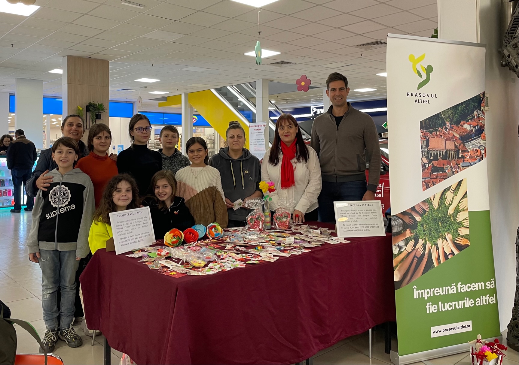 - “Totul a pornit de la nevoia urgentă de a schimba parchetul. Cel pe care îl avem acum este unul foarte vechi și arată urât. Ne dorim pentru clasa noastră altceva! Abia suntem în clasa a V-a, deci mai avem peste 3 ani de stat în această clasă. Acum câțiva ani am avut o nevoie similară, repectiv un videoproiector, pentru clasa în care eram atunci. Ne trebuiau vreo 2000 de lei și am apelat la Radu-Valentin Paul, președintele Asociației Brașovul Altfel, pentru ghidare. Împreună cu acesta am reușit să stragem în câteva zile peste 3000 de lei, ceea ce ne-a permis să luăm și un laptop. Acum am decis să apelăm din nou la dumnealui. Ne bucură faptul că a spus prezent și de această dată și că ne sprijină proiectul “Vrem o clasă altfel!”. După ce am început să facem planul ne-am dat seama că avem și alte nevoi, așa că proiectul a crescut și suntem încrezători că o să reușim să facem rost de donațiile de care avem nevoie. Copiii noștri merită o altfel de clasa! O primă acțiune de strângere de fonduri o derulăm în perioada 1-8 martie în centrul comercial Eliana, unde oferim câte un mărțișor și alte obiecte făcute de copii oricui este dispus să ne ajute cu o donație. Spre exemplu, în prima zi am primit donații în valoare de 1650 lei. Ideea cu care plecăm la drum este să cerem donații și să oferim celor care ne ajută ceva care să fie făcut de copiii noștri. Profităm de situație să le oferim și o lecție de viață. Alături de noi este și diriginta clasei, doamna Lucia Pavelescu, care este implicată 100% în acest proiect. Dorim pe această cale să îi mulțumim din tot sufletul!”, a declarat Emilia Oțeleanu, reprezentantul părinților.
