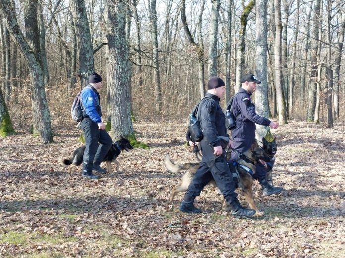 La acţiune participă câini de urmă, dar şi drone ale IGAV.