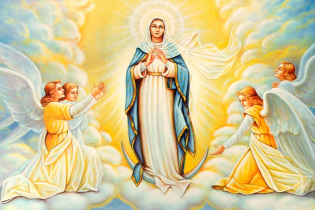 După care taie o altă bucată de pâine în formă de triunghi și o așază în dreapta Agnețului, spunând: ,,Întru cinstea și pomenirea binecuvântatei, slăvitei, Stăpânei noastre, de Dumnezeu Născătoarei și pururea Fecioarei Maria, pentru ale cărei rugăciuni primește, Doamne, jertfa aceasta întru jertfelnicul Tău cel mai presus de ceruri”. În Biserica Ortodoxă și Biserica Catolică Fecioara Maria, mama lui Iisus Hristos însoțește fiecare slujbă, așa cum Maria l-a însoțit pe Iisus de la Naștere, până la calvar și Înviere. Nu o poți separa de Iisus, pentru că El și-a luat trup din pântecele ei. De aceea se numea ,,Fiul Omului”, din respect pentru Mama Sa. Chiar dacă unii au încercat să transforme creștinismul într-un patriarhat steril, lucrurile sunt mult mai profunde și complexe decât cred aceștia. Fără femeie viața nu vine, chiar și Cel coborât din cer a venit în lume prin femeie.