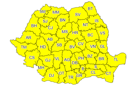 Meteorologii au emis o avertizare Cod Galben de intensificări ale vântului pentru toată țara, valabilă începând de sâmbătă dimineața la ora 08:00 până duminică la ora 15.00.