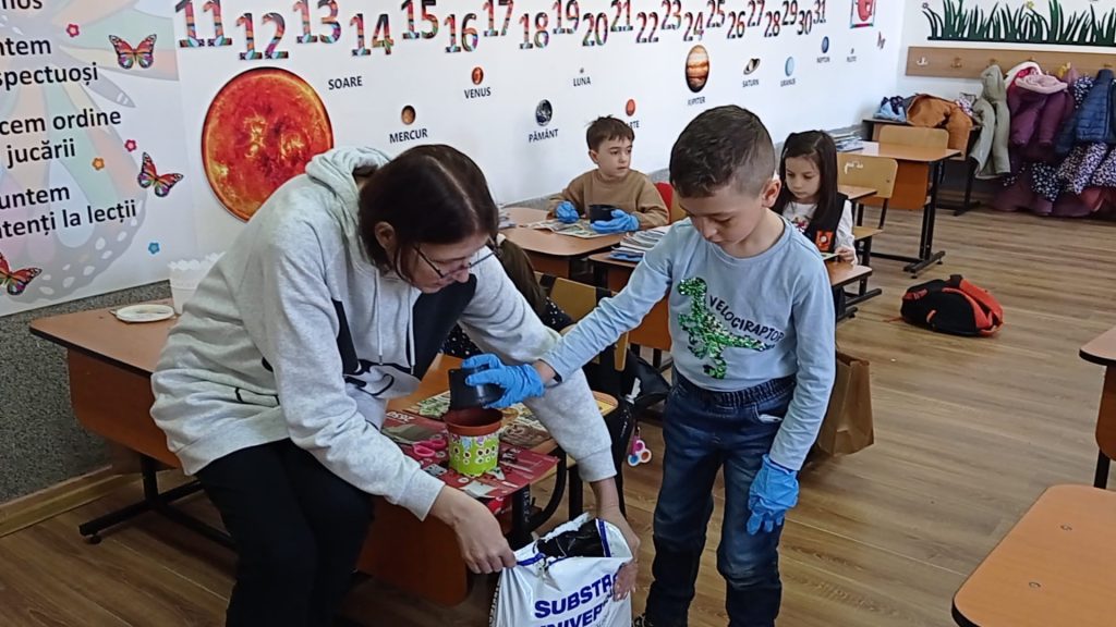 • ,,Tema activității de astăzi este plantarea semințelor unei plante. În fiecare zi am avut o altă temă, luni a fost realizarea unei machete ,,Orașul verde”. Elevii au confecționat căsuțe, copaci, vegetație. Marți am fost la un restaurant unde li s-au prezentat copiilor principiile unei alimentații sănătoase.. Miercuri am realizat, din materiale refolosibile, instrumente muzicale și am vizionat un material despre un cântăreț care cânta la frunze. Ziua de Vineri a fost selectată pentru un program de curățenie în curtea școlii și în parcul de lângă școală. Copiii au realizat obiecte foarte interesante din materiale reciclabile și au dovedit că pot pune în practică ceea ce au aflat pe parcursul activității” a spus Gabriela Cocan, profesoară la ciclul primar- Clasa Pregătitoare B.