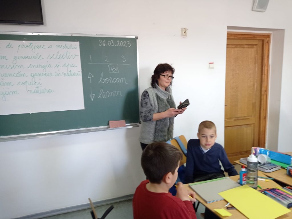 • ,,Înțelegând importanța colectării selective a deșeurilor, copiii au   confecționat din materiale reciclabile diferite obiecte. În ultima zi a săptămânii, elevii au realizat un meniu sănătos pentru o zi folosind piramida alimentelor și observând rolul fiecărui aliment sănătos” a spus profesoara Georgeta Florea, tot în cadrul ciclului primar.