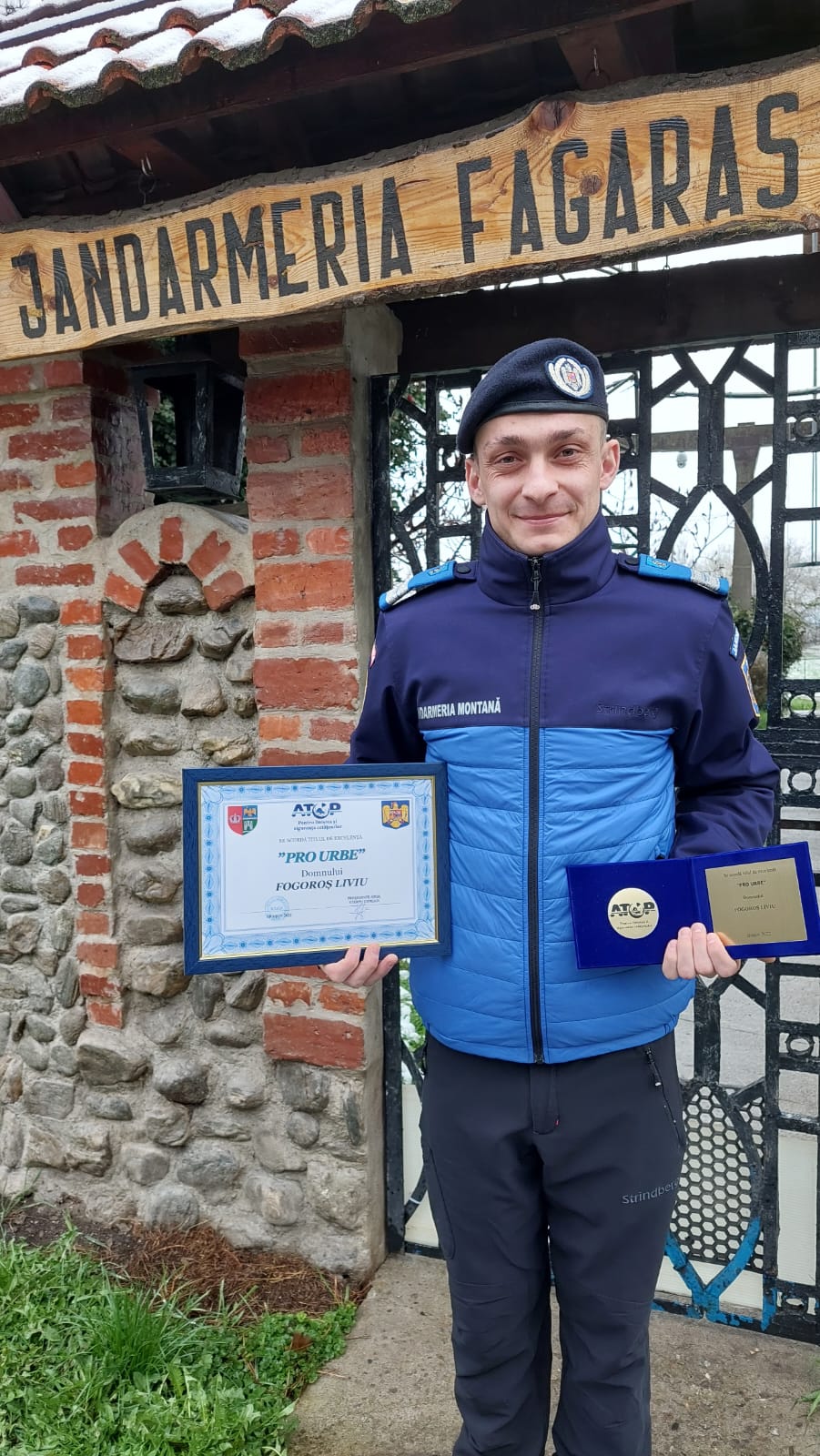 Plutonierul Fogoroș Liviu, subofițer în cadrul Postului de Jandarmi Montan Sâmbăta, a fost premiat de Autoritatea Teritorială de Ordine Publică Brașov (ATOP) Brașov cu distincția ,,PRO Urbe“ cu ocazia Zilei Jandarmeriei Române, 3 aprilie. A fost apreciată intervenția subofițerul din noaptea de 14/15 octombrie 2022 când a participat la o misiune deosebit de periculoasă de salvare a unui turist ucrainean rătăcit în zona Viștea Mare din masivul Făgăraș și care a fost adus în siguranță la baza muntelui.