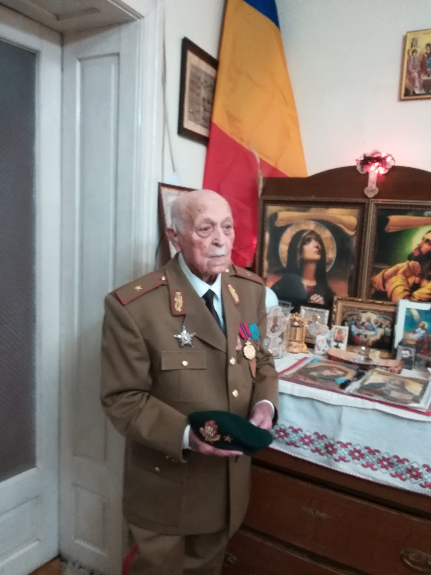 Galerie foto. Veteranul de război Gheorghe Prunduș a primit gradul de general de brigadă cu o stea, în rezervă, prin Decret Prezidențial. Dascălul făgărășean are 102 ani