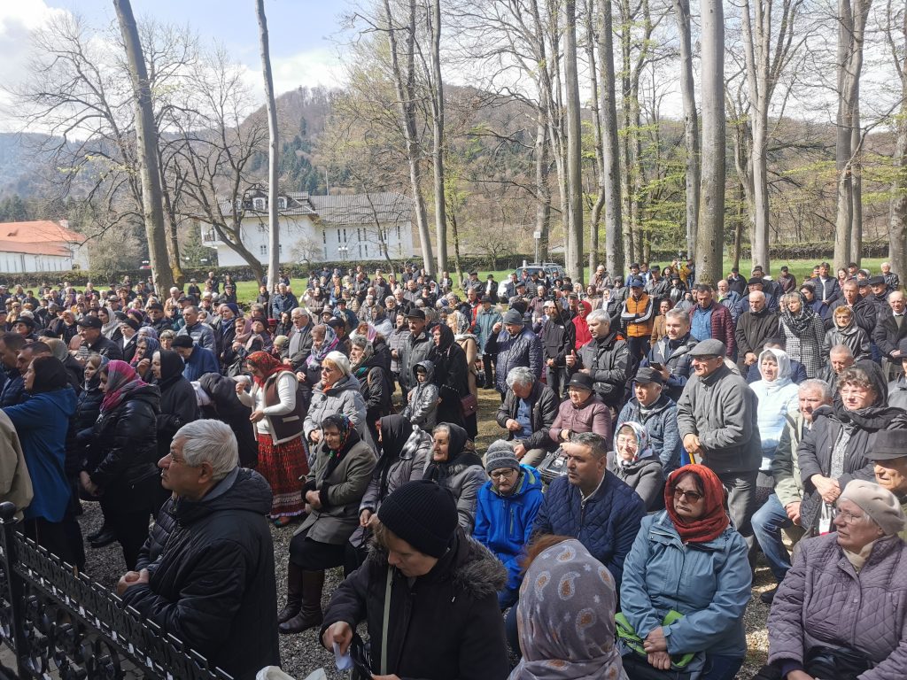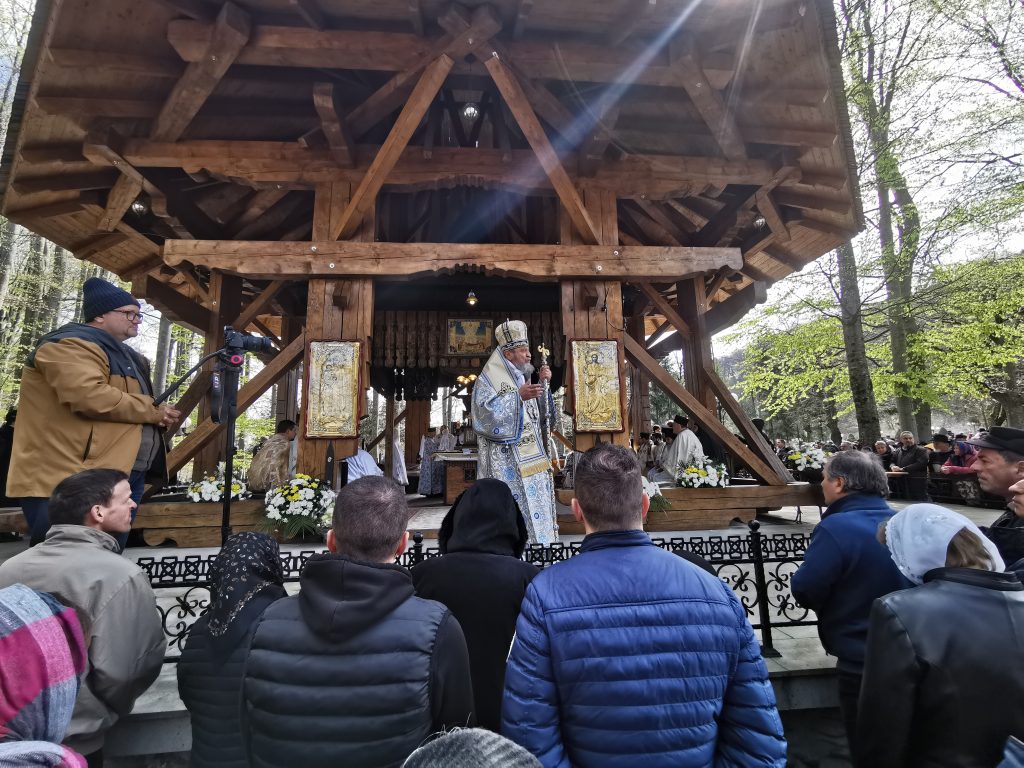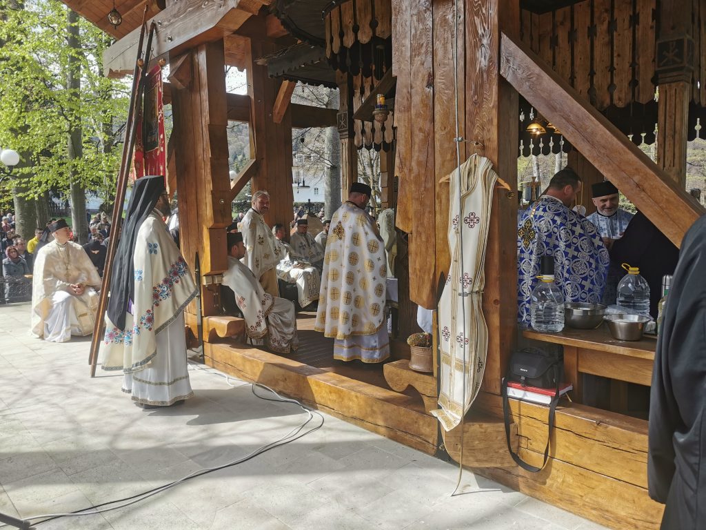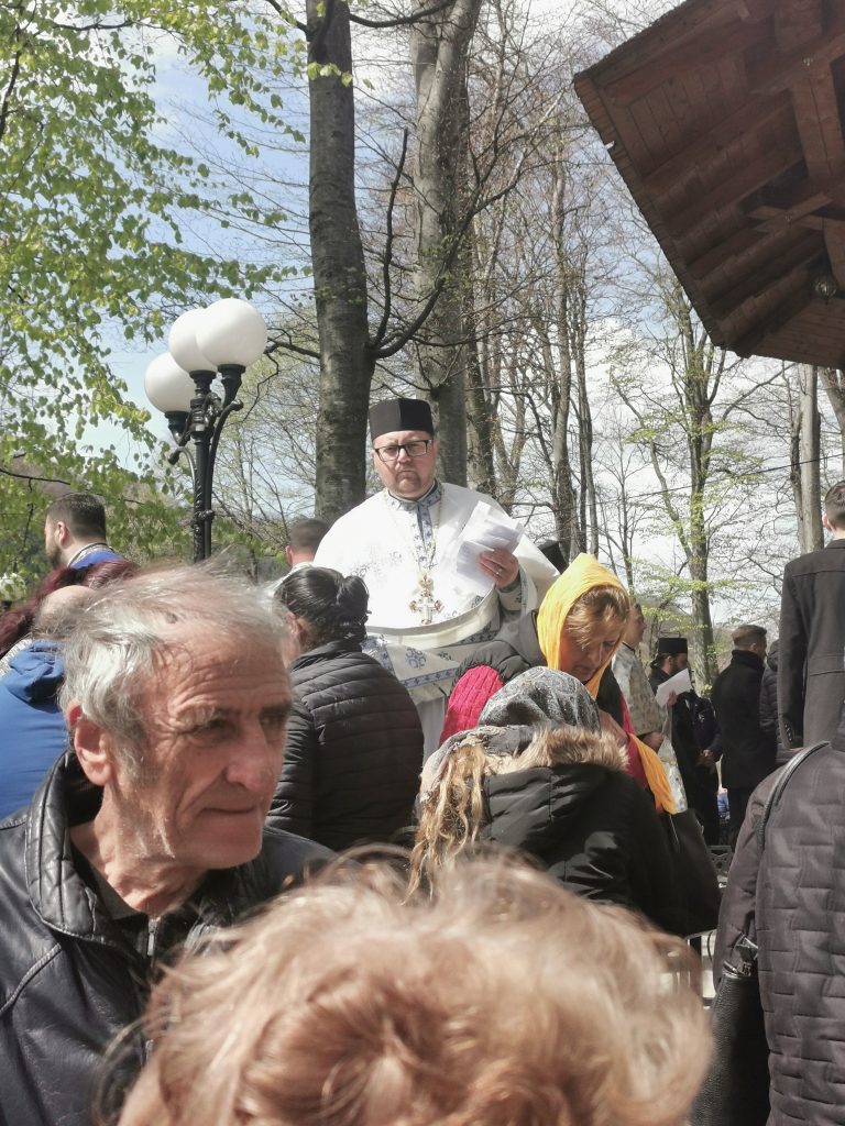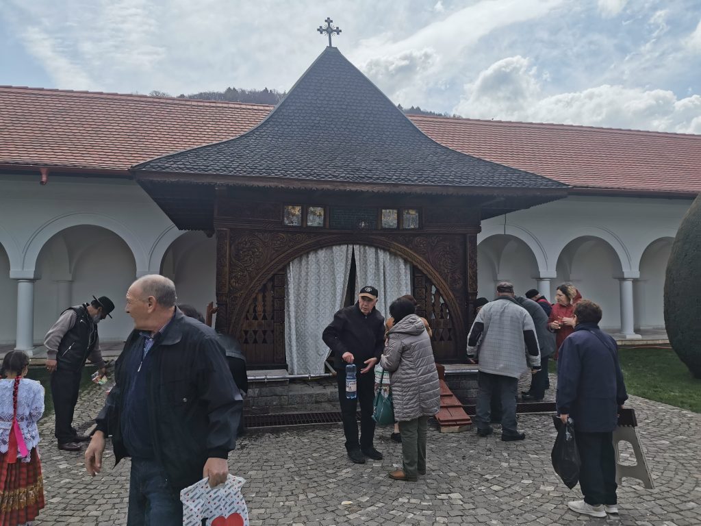 În Vinerea din Săptămâna Luminată, 21 aprilie 2023,  parcă toate drumurile duceau spre Mănăstirea Brâncoveanu de la Sâmbăta de Sus unde se prăznuia hramul  ,,Izvorul Tămăduirii“, al doilea hram al lăcașului de cult. Aglomeraţie mare încă de la intrarea în complexul turistic, iar echipaje de poliţişti şi jandarmi încercau să fluidizeze traficul spre mănăstire.  Comercianţi de tot felul, cu suveniruri, cu icoane, cu mici, bere, fripturi sau cozonaci, au ocupat spațiile de lângă drumul de acces pre mănăstire. Dar cu cât te apropiai de poarta mănăstirii şi lăsai în urmă fumul grătarelor și zgomotul teraselor,   liniştea se instala treptat. Muntele îţi da, parcă, o siguranţă rece şi plăcută, în timp ce soarele  încerca să îndepărteze norii, zâmbind uşor printre copaci. În jurul altarului din pădure, lume multă,  liniştea pădurii fiind  întreruptă de troparul Învierii. Prin  staţiile montate la altar, liturghia răzbătea peste culmile munţilor.  Un loc mai minunat precum acesta n-am mai găsit, spuneau unii credincioşi veniţi de departe pentru acest praznic.  Oameni din nordul ţării, din judeţele din sud,  dar şi din împrejurimile Ţării Făgăraşului s-au aşezat în jurul altarului din pădure cu privirile aţintite spre soborul de preoţi. IPS Laurenţiu Streza, episcopul Ilarion Făgărăşeanul şi alţi zeci de preoţi  au  oficiat slujba religioasă.