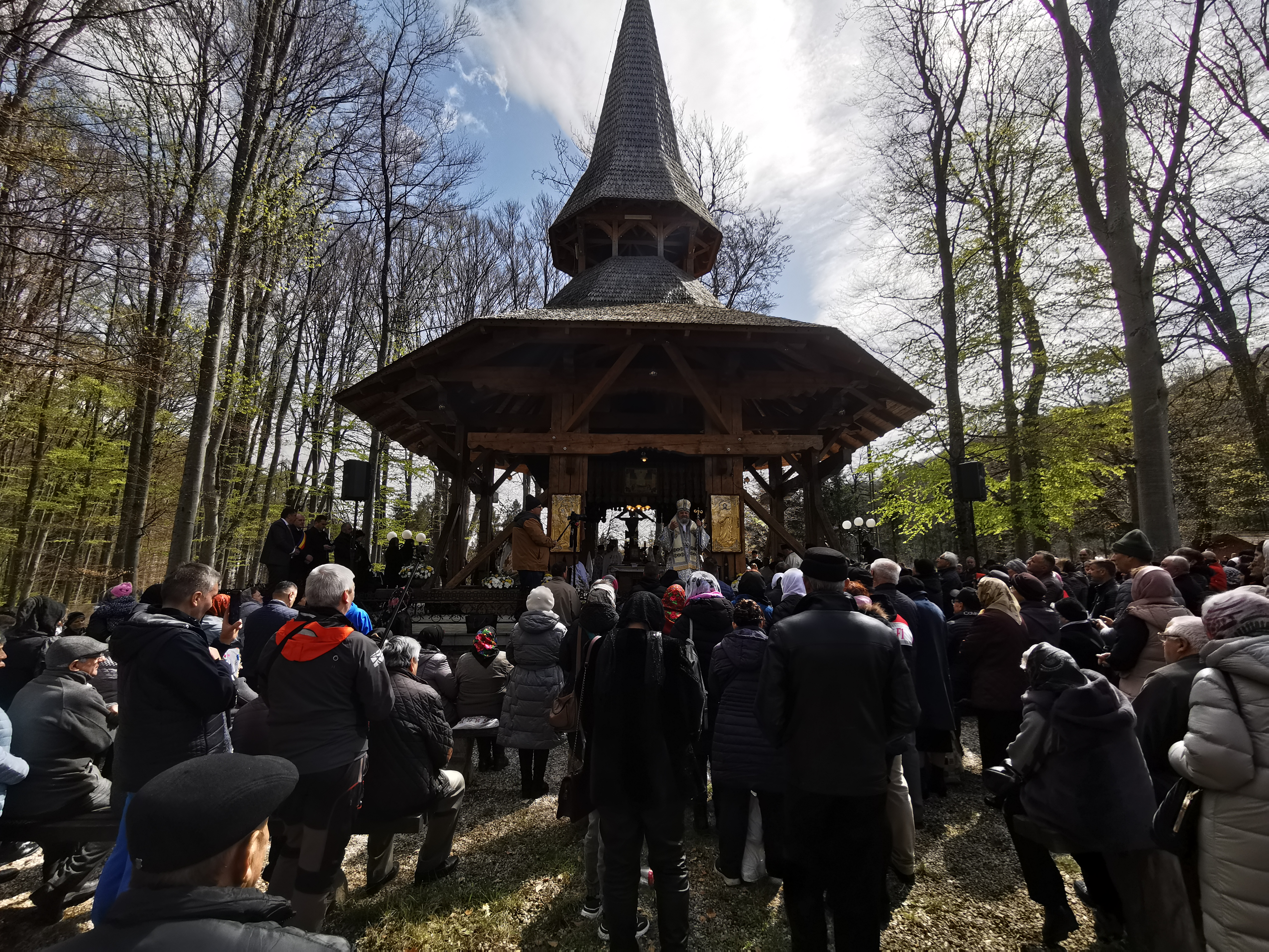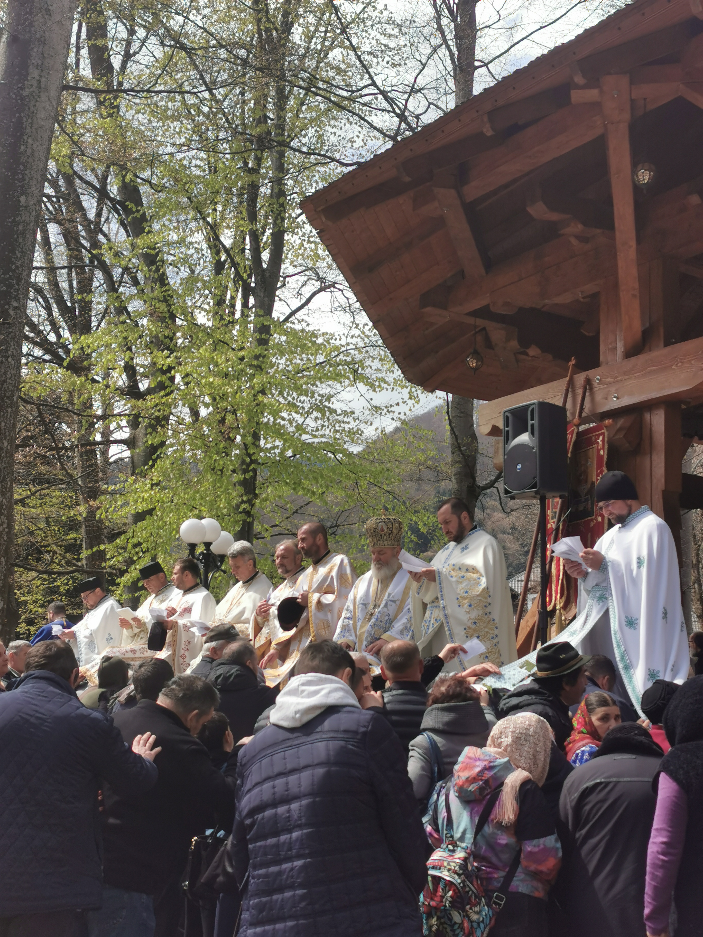 În Vinerea din Săptămâna Luminată, 21 aprilie 2023, parcă toate drumurile duceau spre Mănăstirea Brâncoveanu de la Sâmbăta de Sus unde se prăznuia hramul ,,Izvorul Tămăduirii“, al doilea hram al lăcașului de cult. Aglomeraţie mare încă de la intrarea în complexul turistic, iar echipaje de poliţişti şi jandarmi încercau să fluidizeze traficul spre mănăstire. Comercianţi de tot felul, cu suveniruri, cu icoane, cu mici, bere, fripturi sau cozonaci, au ocupat spațiile de lângă drumul de acces pre mănăstire. Dar cu cât te apropiai de poarta mănăstirii şi lăsai în urmă fumul grătarelor și zgomotul teraselor, liniştea se instala treptat. Muntele îţi da, parcă, o siguranţă rece şi plăcută, în timp ce soarele încerca să îndepărteze norii, zâmbind uşor printre copaci. În jurul altarului din pădure, lume multă, liniştea pădurii fiind întreruptă de troparul Învierii. Prin staţiile montate la altar, liturghia răzbătea peste culmile munţilor. Un loc mai minunat precum acesta n-am mai găsit, spuneau unii credincioşi veniţi de departe pentru acest praznic. Oameni din nordul ţării, din judeţele din sud, dar şi din împrejurimile Ţării Făgăraşului s-au aşezat în jurul altarului din pădure cu privirile aţintite spre soborul de preoţi. IPS Laurenţiu Streza, episcopul Ilarion Făgărăşeanul şi alţi zeci de preoţi au oficiat slujba religioasă.